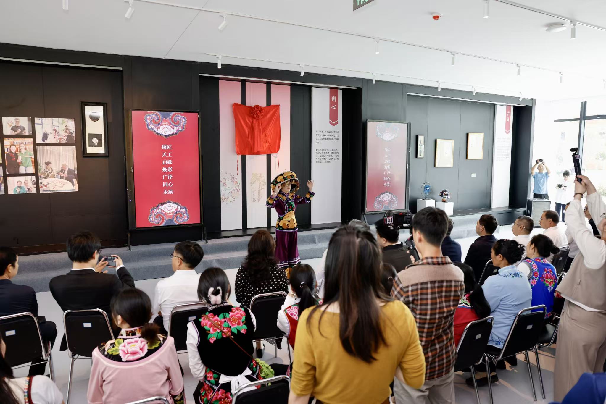 開館當日,三大特色展覽同步亮相。“至善傳習·科技煥彩”科技展,系統展示了傳習館建設中的光伏技術、零碳設計、數字化應用等前沿成果;“南華彝族刺繡培訓成果”展覽,呈現了校企合作助力鄉村技能培訓、推動非遺產業化的階段性成效;東南大學彝繡研究中心設計作品展與“海峽兩岸南華彝繡大賽”成果展,則集中展示了高校藝術設計團隊與兩岸創作者對彝繡非遺的創新探索。