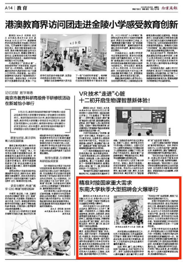 9月25日,東南大學2025年秋季“人才報國”大型線下招聘會在九龍湖校區體育館火爆舉行。
